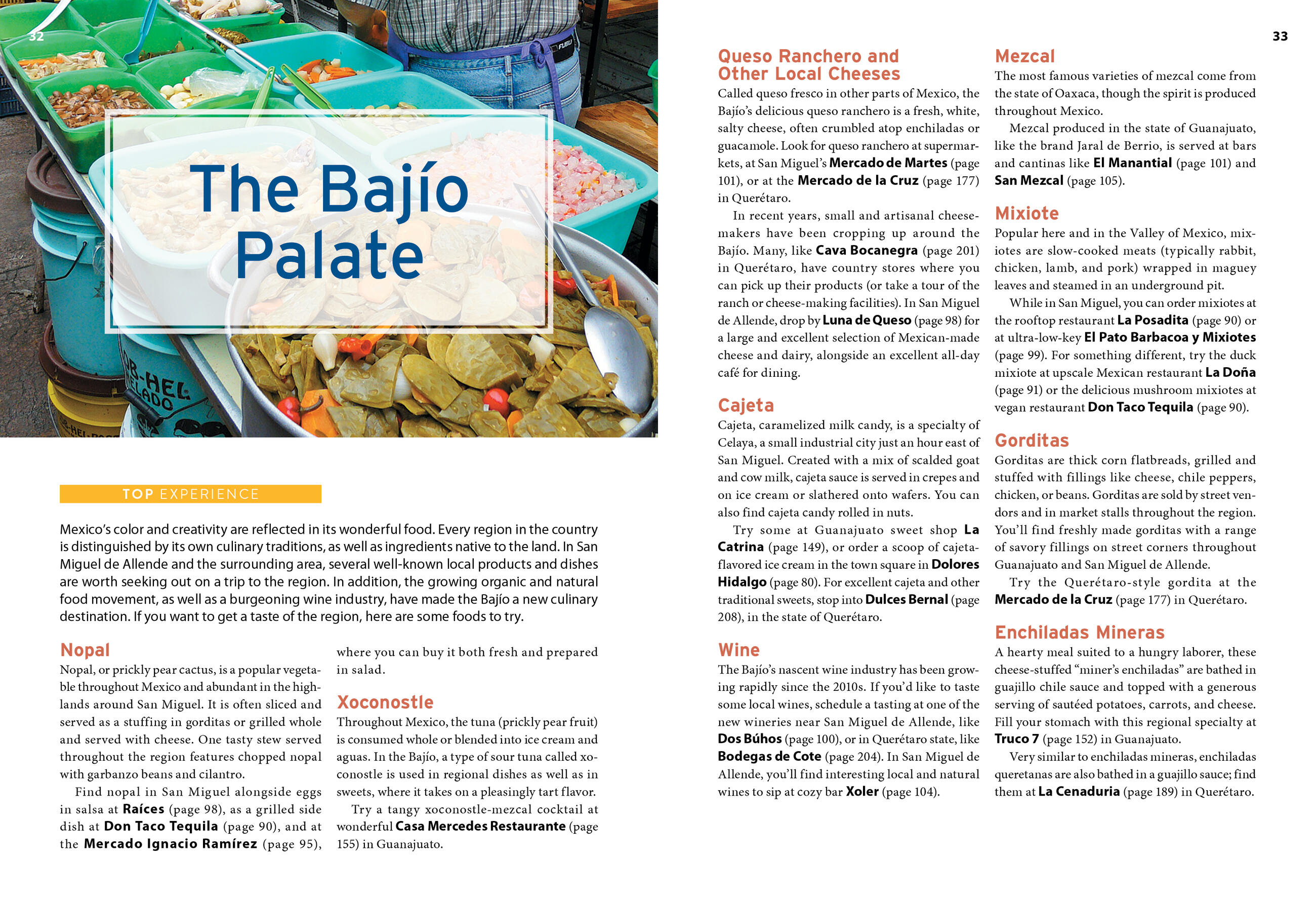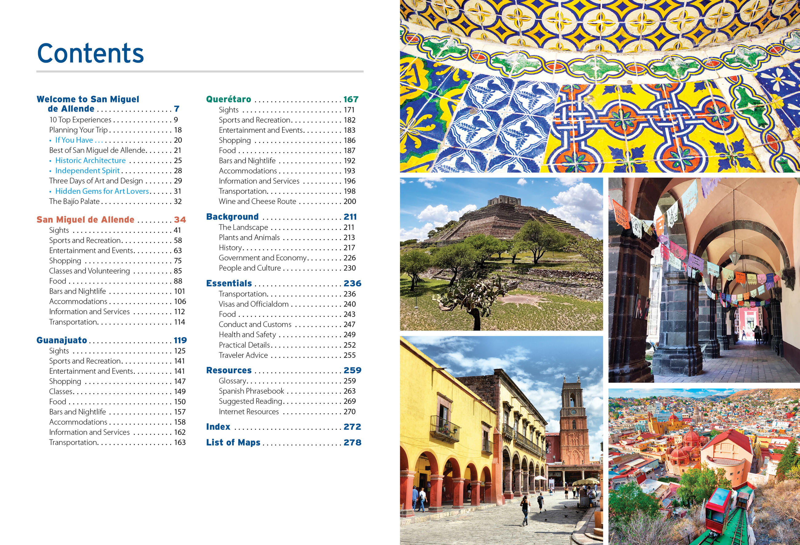 - The top sights and unique experiences: Admire colonial architecture and browse contemporary art galleries and streetside markets. Soak in a hot spring, sample mezcal, and snack on gorditas. Stroll the Franciscan missions of the Sierra Gorda or enjoy the mariachis serenading diners on the sidewalks. Celebrate Mexico’s independence at the colorful parades of the fiestas patrias, or indulge in handmade tamales before siesta time