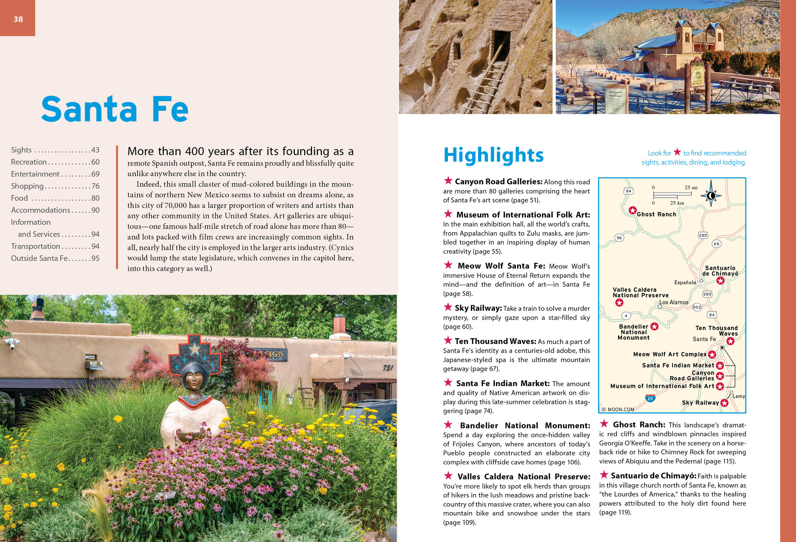 Explore the eccentric art installations, historic adobe pueblos, and rugged high desert trails of the Land of Enchantment with Moon Santa Fe, Taos & Albuquerque. Inside you’ll find: